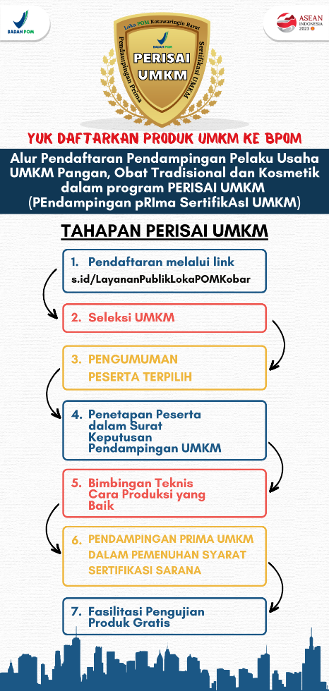 Loka POM di Kabupaten Kotawaringin Barat hadir dengan PERISAI UMKM (PEndampingan pRIma SertifikAsI UMKM) untuk membantu para pelaku usaha agar produknya terdaftar dan mendapatkan izin edar BPOM RI.