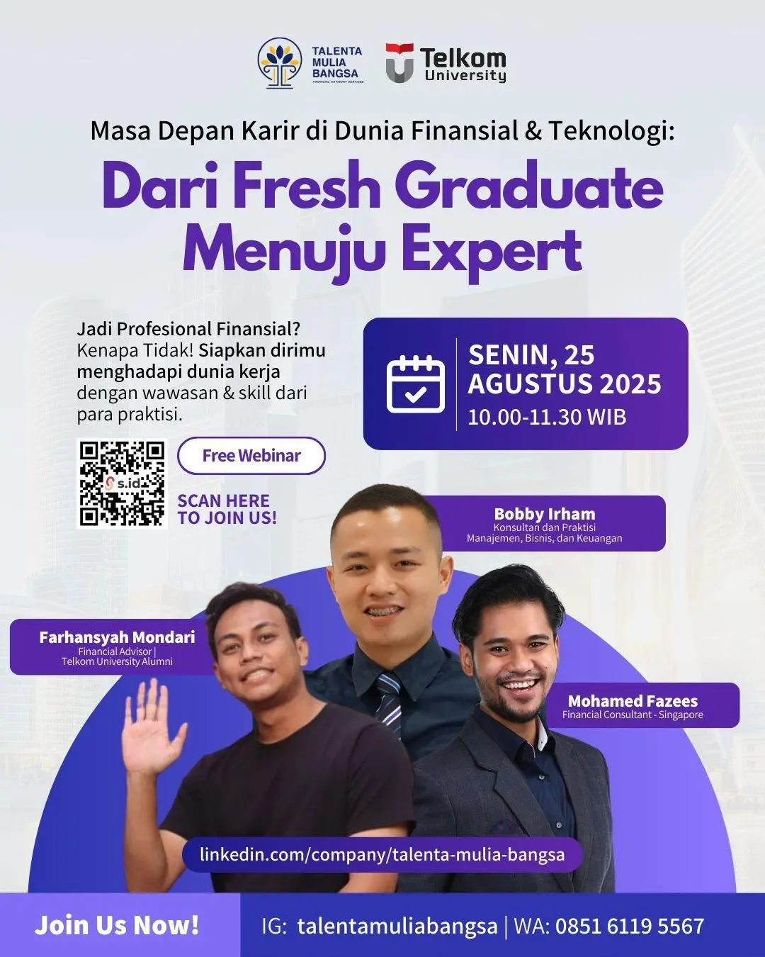 Kalau kamu lagi bingung langkah awal karier antara lanjut kuliah, ambil sertifikasi, atau langsung terjun webinar ini bakal bantu kamu lihat peta jalan karier finansial & teknologi dari sudut pandang praktisi.