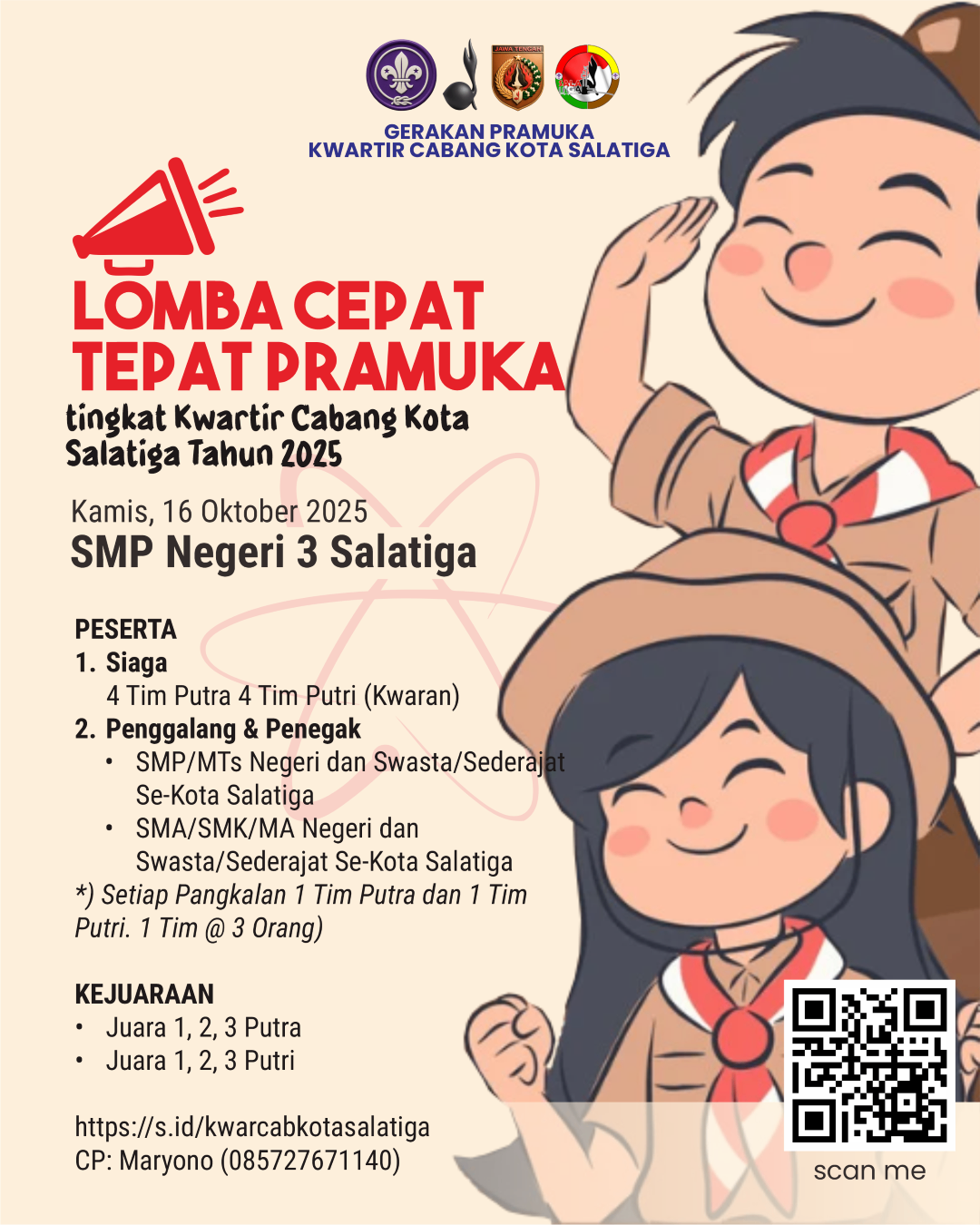 Peserta Golongan Penggalang dan Penegak wajib membawa HP/Smartphone*) untuk mengerjakan soal di babak penyisihan.