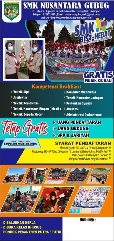 Sebagai lembaga pendidikan, SMK Nusantara Gubug tanggap dengan perkembangan teknologi tersebut. Dengan dukungan SDM yang di miliki sekolah ini siap untuk berkompetisi dengan sekolah lain dalam pelayanan informasi publik. Teknologi Informasi Web khususnya, menjadi sarana bagi SMK Nusantara Gubug untuk memberi pelayanan informasi secara cepat, jelas, dan akuntable. Dari layanan ini pula, sekolah siap menerima saran dari semua pihak yang akhirnya dapat menjawab Kebutuhan masyarakat.