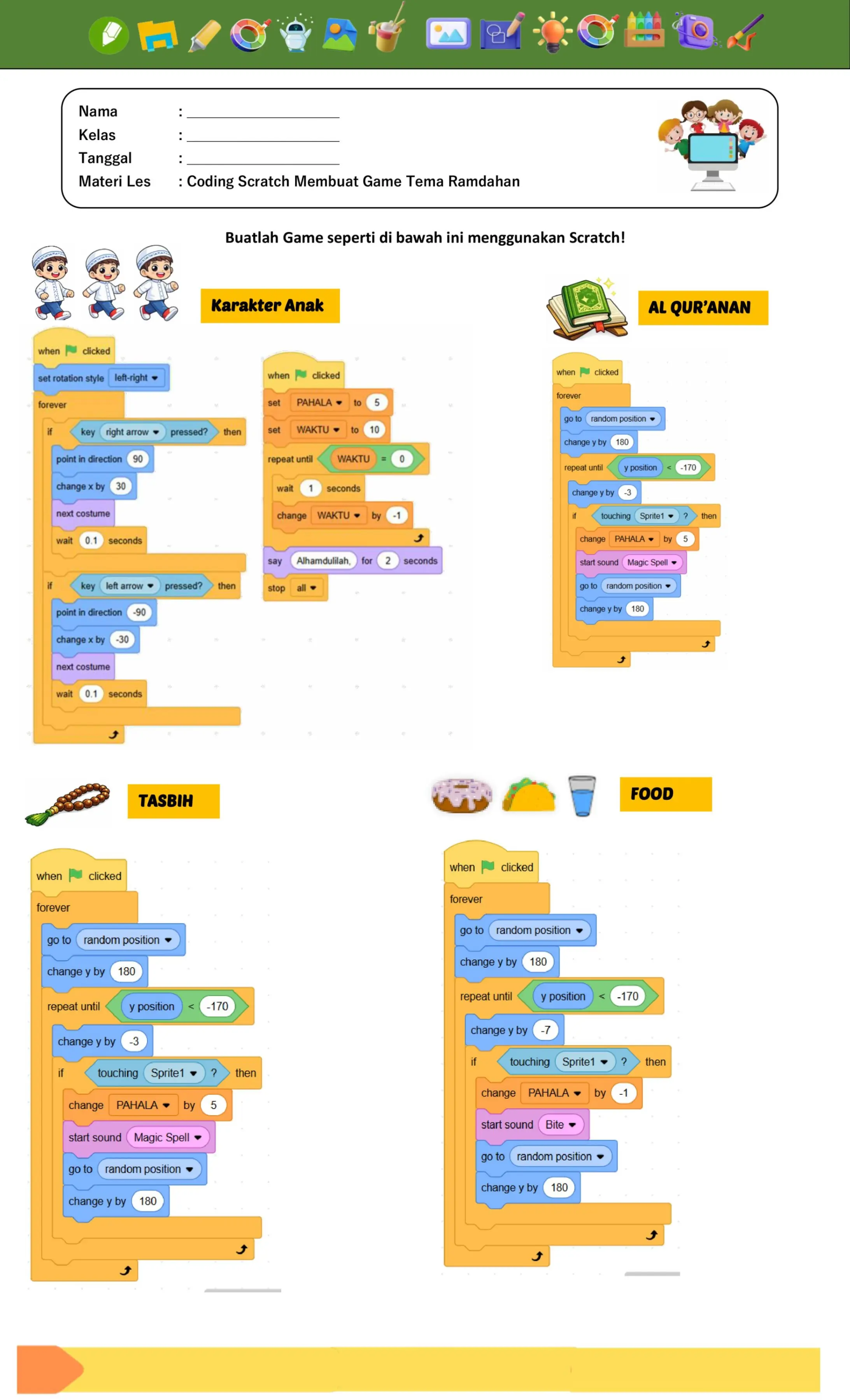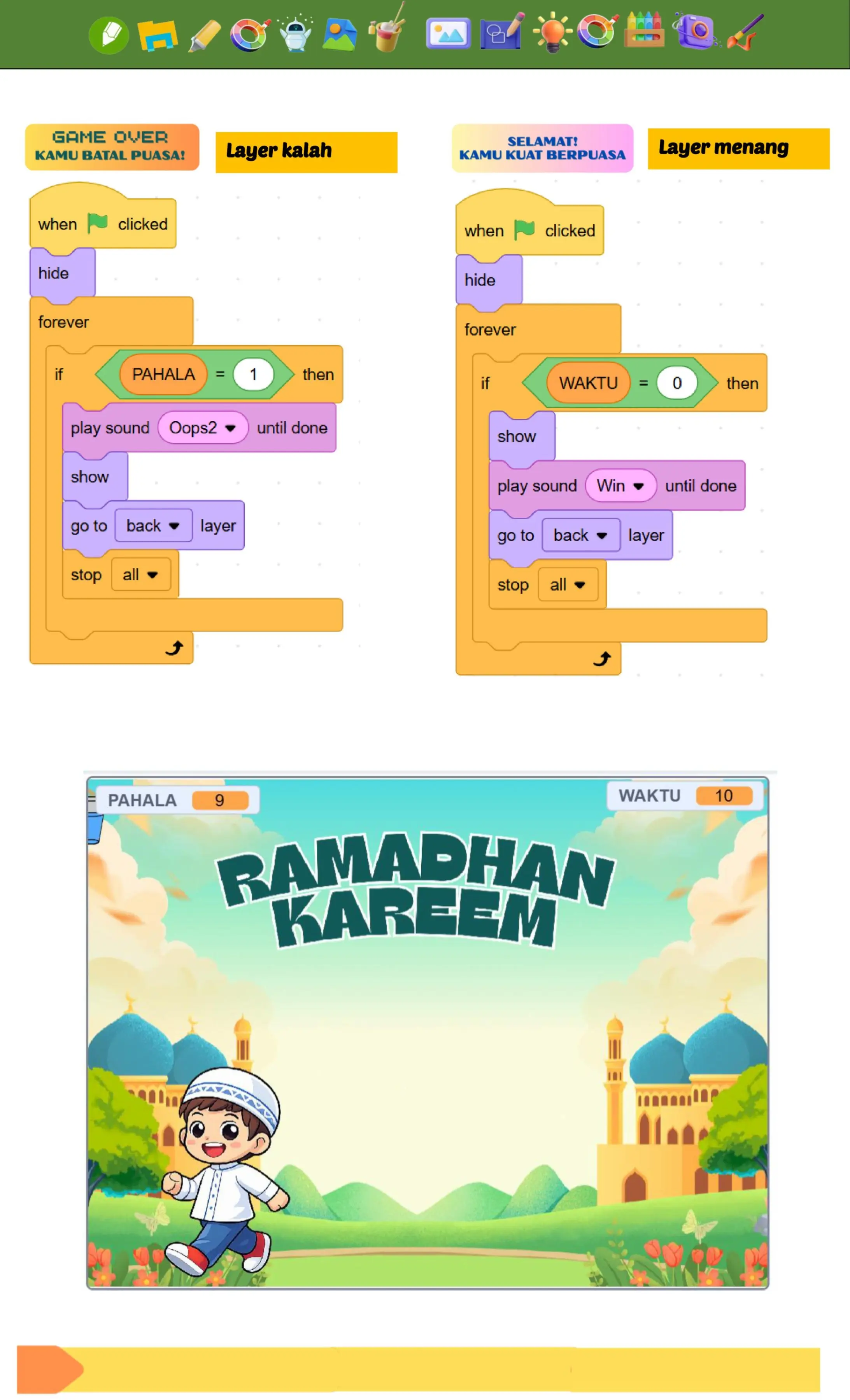 1. BuatlahGame Tema Ramadhan ini menggunbakan Scrath.