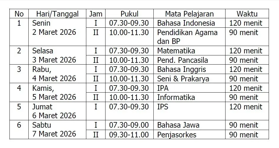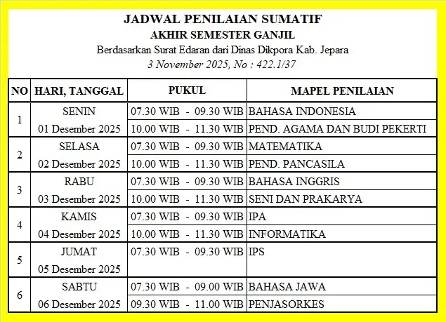 JADWAL PENILAIAN SUMATIF